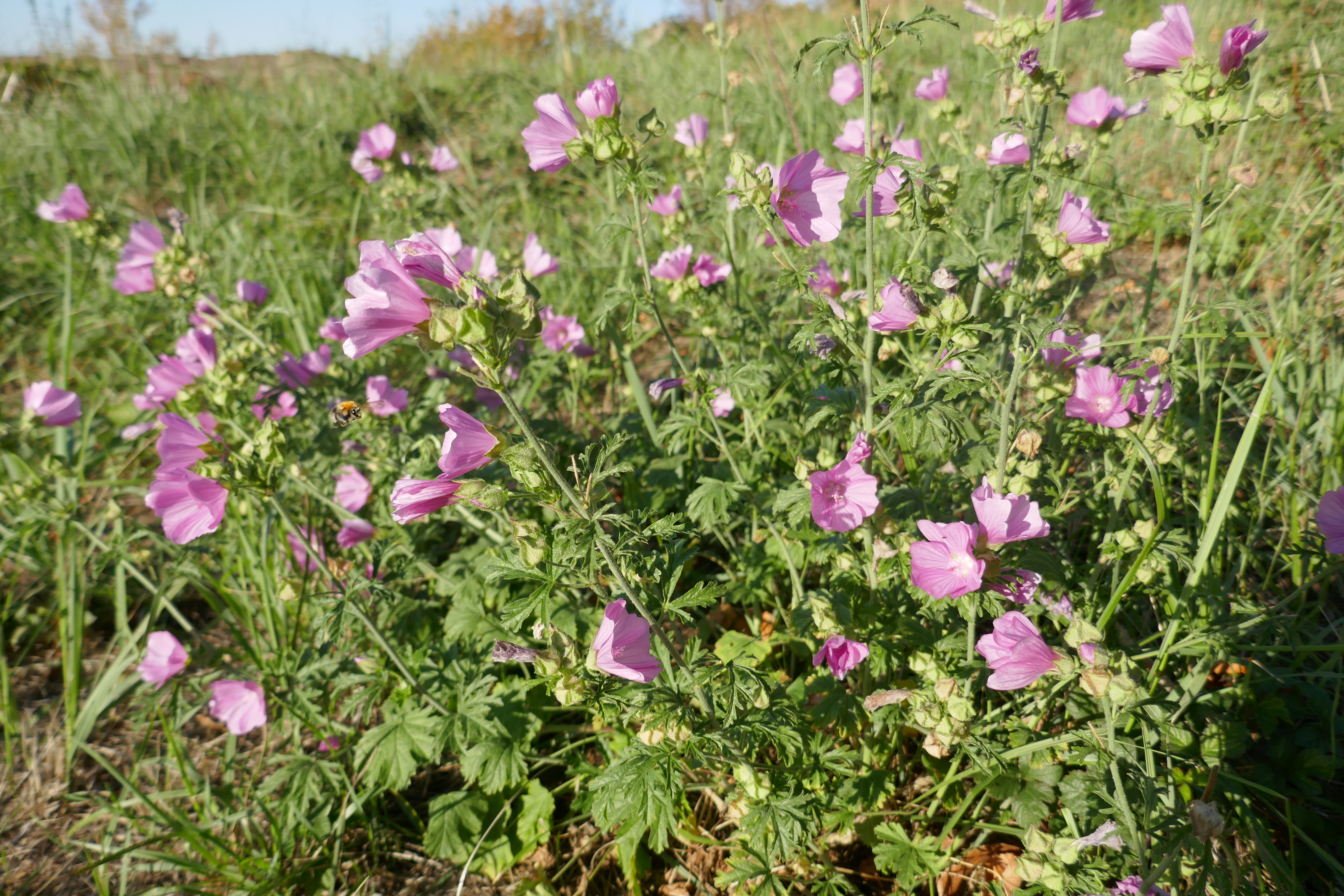 ich habe diese Blume entdeckt und hätte getippt, dass es eine Moschusmalve ist, allerdings bin ich mir unsicher, weil sie laut Bestimmungsbuch sehr selten sein soll und leicht zu verwechseln ist mit der Rosenmalve.