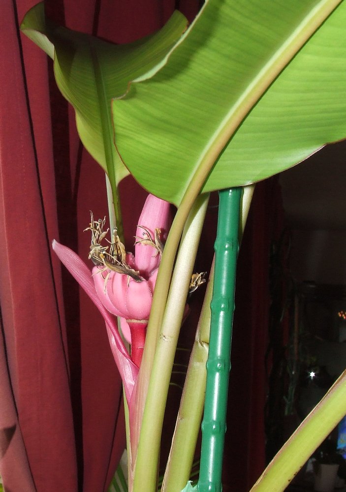 Die Blüte der Musa kommt direkt aus dem Wachstumszentrum,das heisst die Musa hat ihre Lebensaufgabe mit der Blüte abgeschlossen.Selbst ein Abschneiden des Blütenstandes ändert nichts daran.Die Vermehrung übernehmen dann die Kindel,die da durchaus noch kommen können.