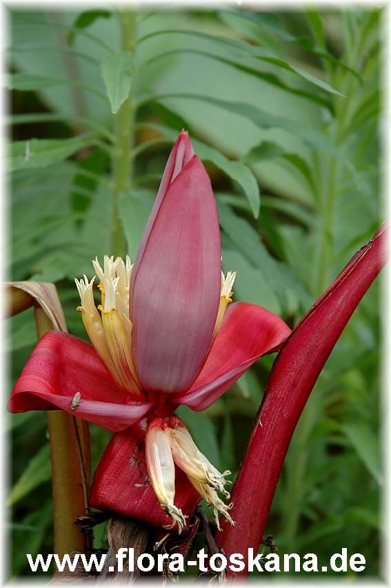 Info: exotische & elegante Blüten in Rosa; schlanke & rötliche Blätter; schlanker Wuchs & exotischer Tropen-Look; kälteverträgliche Banane zum Auspflanzen im Garten; robust & pflegeleicht