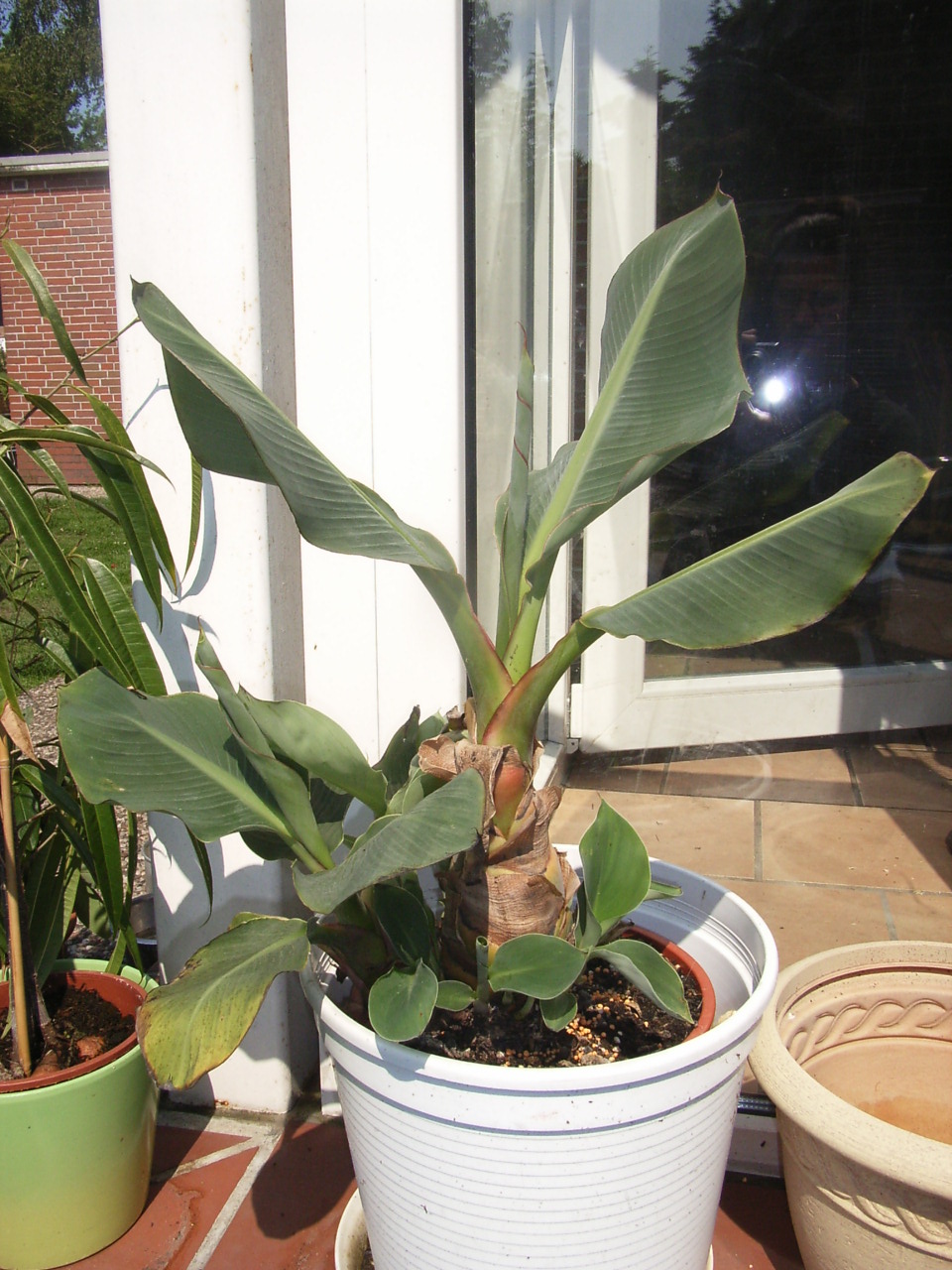 Bild 1 ist vom April, Bild 2 ist von heute. Der Topf ist derselbe, daher sieht man den Zuwachs des Scheinstammes sehr gut. Was sagen die Experten, macht sie es dieses Jahr noch in dem Topf, oder soll ich umtopfen?