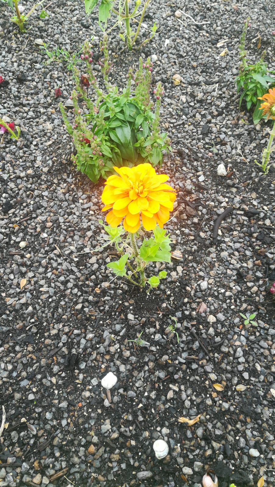 HalloHmm, könnte vielleicht eine gefüllte Zinnie sein. Blätter, die bei der Identifikation helfen könnten, sind ja etwas Mangelware … Schnecken?LGVroni