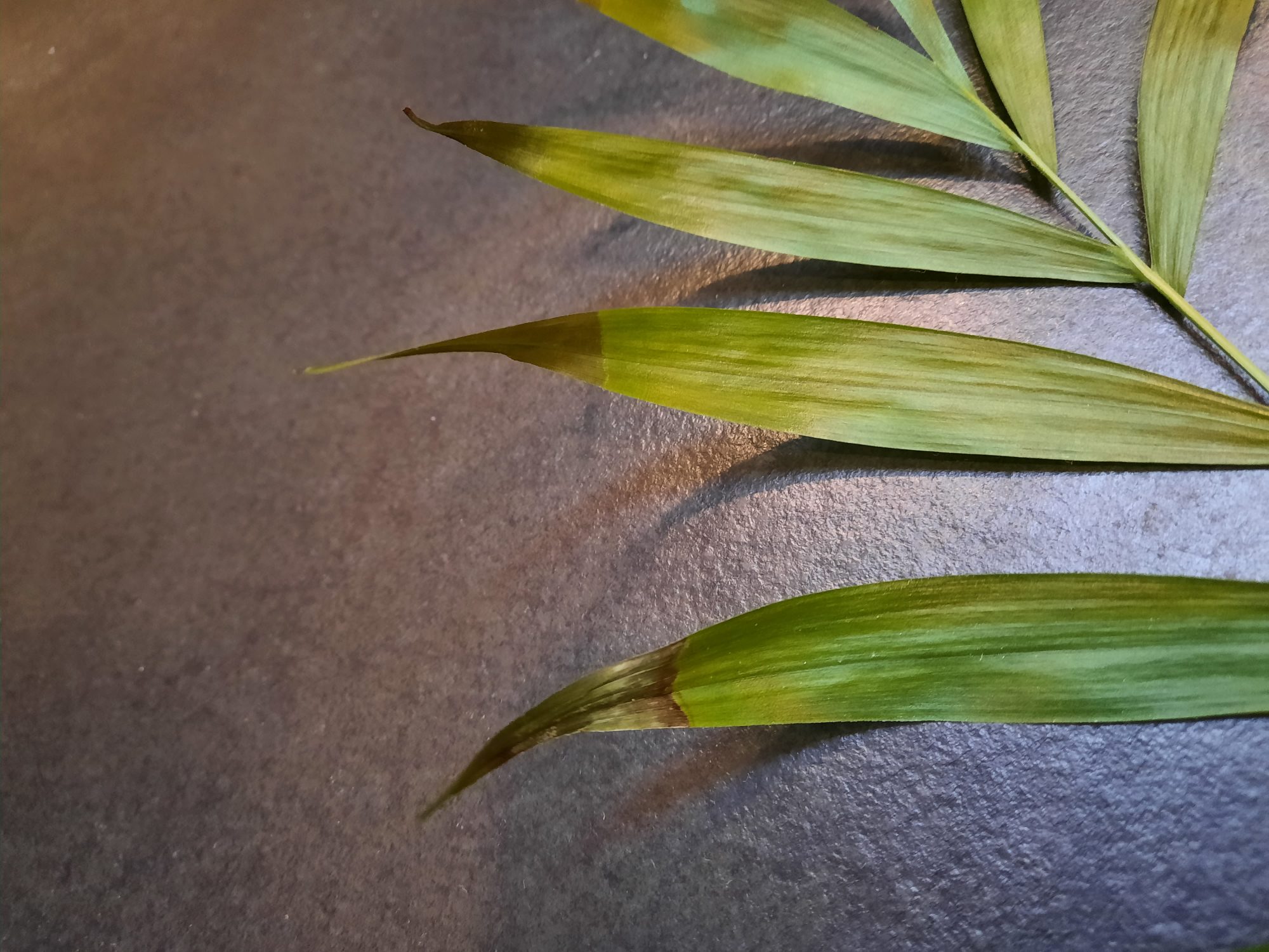 Es fing an mit einem Drachenbaum, der an den Spitzen plötzlich braune Flecken bekam oder die Spitze gänzlich braun wurde. Nur ist es nicht dieses "normale" braun, was die Pflanzen bekommen, wenn die Luft zu trocken ist, sondern es ist ein braun, das nach einiger Zeit gräulich wird und sich durch das gesamte Blatt "frisst". Die Stelle sieht dann aus wie ausgetrocknet, fühlt sich aber eher weich und schlaff an.