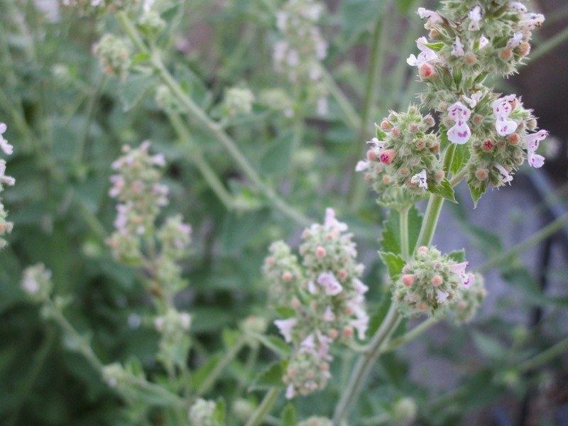 Pflanze 1 sieht nach einer Apfelminze aus? Mehrjährig, es geht um die grüne Pflanze unterhalb der schwarzen Ribiselbeeren
