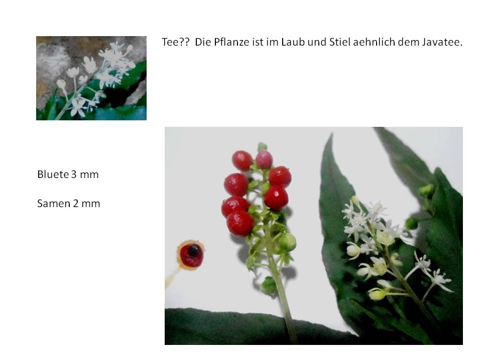 Die Einheimischen nennen den Busch, den Sie meist als Vorgartenumsaeumung benutzen, Tee. Der Geschmack ist dem des Javatee aehnlich.