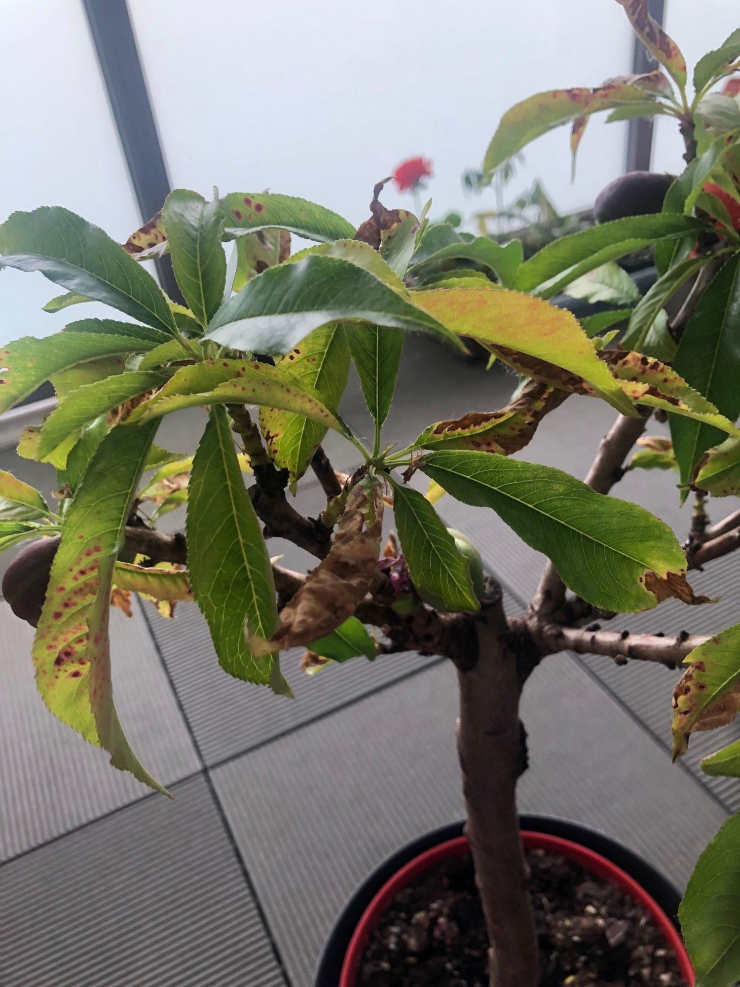 Allerdings haben sich dann in den letzten Wochen die Blätter stark verfärbt. Teilweise sind sie braun bzw. haben einfach nur ein relativ schwaches Grün. Viele keline Früchte sind daraufhin abgefallen, wobei bisher trotzdem noch einige dran sind. Ich glaube nicht, dass es sich um die berüchtigte Kräuselkrankheit handelt, aber was weiß ich schon....