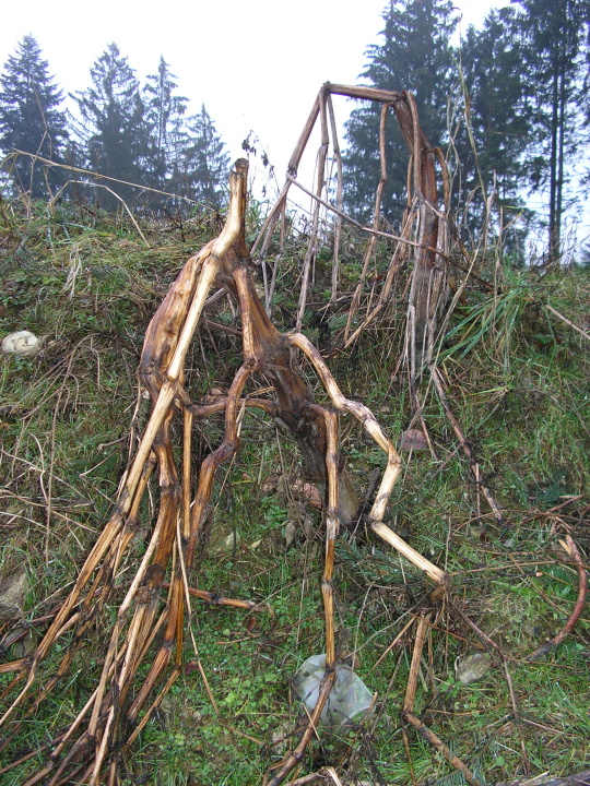 Bild 3: Das indische Springkraut (Impatiens glandulifera) verrät sich im Winter durch die knotigen abgefrohrenen Stängel, die oft wie Wurzeln wirken