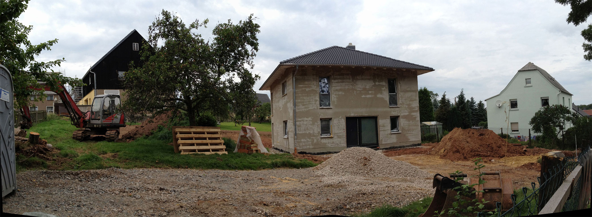 Nachdem der Hausbau relativ gut läuft und die Gewerke im Innenbereich weiterarbeiten, wollten wir einmal etwas im Außenbereich für Ordnung sorgen. Allerdings fehlt uns irgendwie der letzte "Funke" zur passenden Idee
