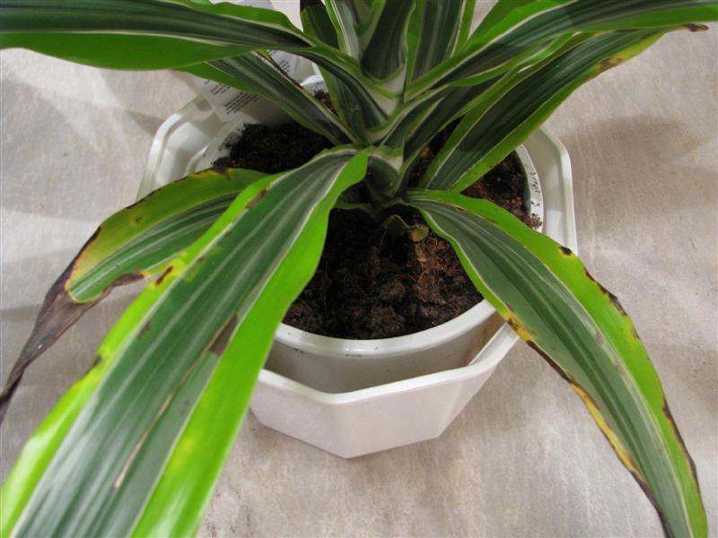 Eigentlich sind braune Stellen meist ein Zeichen von zu wenig Luftfeuchtigkeit. Und vielleicht zusätzlich durch die Umstellung.