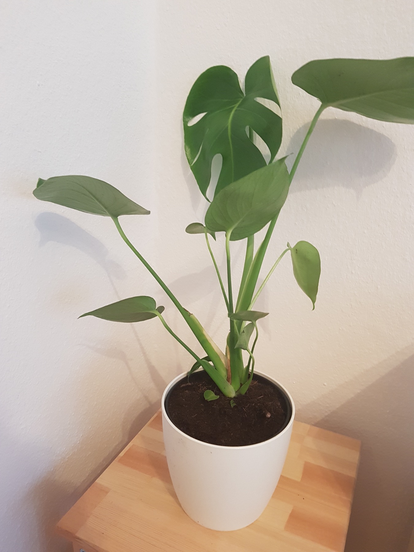 Meine Monstera hatte zu Beginn 2 kleine grüne Blättchen, die gerade frisch aus der Erde geschlüpft waren. [attachment=1]20190906_182927.jpeg[/attachment]
