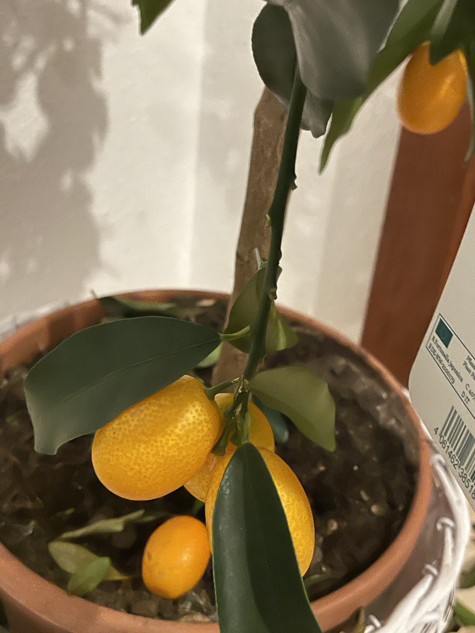 Am 11.2. habe ich von meiner Mutter ein kleines Kumquat-Bäumchen für meine Wohnung (!) erhalten. Sie hat es im Baumarkt gekauft. Es verlor ein-zwei Blätter beim Einzug aber wirkte gesund. Ich habe einen West-und einen Ost-Balkon. Es steht drinnen vor dem Fenster zum West-Balkon. Wegen der Hausecke scheint die Sonne erst ab ca. 15 Uhr direkt rein.