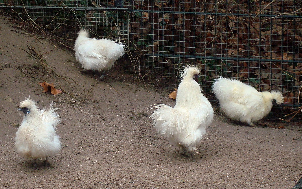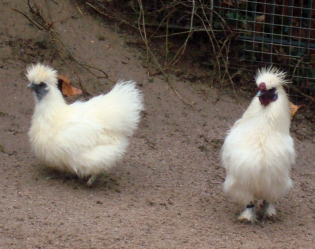 danke für die Bilder von den einzig wahren Puschelhühnern Aber irgendwie bin ich verwirrt. War da ein Schild bei den Seidis dran wo die Rasse draufstand? Wie mir das aussieht sind die Hennen normale Zwerg-Seidenhühner ohne Bart und der Hahn ( mit dem rot) ist ein siamesisches Zwerg-Seidenhuhn. Nur die Siamesischen haben ein rotes Gesicht, die normalen haben ein blaues