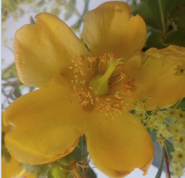 Der kleine Strauch (?) mit den gelben Blüten ist mir unbekannt,