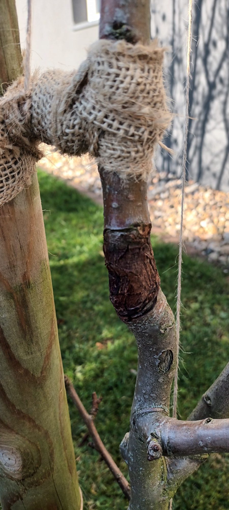 ich habe an einem meiner letztes Jahr gepflanzten Birnenbaum eine mir unbekannte Schadstelle entdeckt...