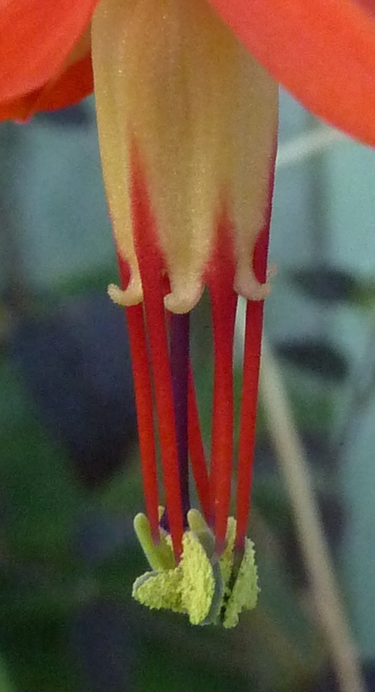 Lobelia laxiflora (was es alles für hübsche Pflanzen gibt!) ist es nicht.Und auch in der ganzen Familie der Blutweiderichgewächsen (Lythraceae) werdet ihr nicht fündig.