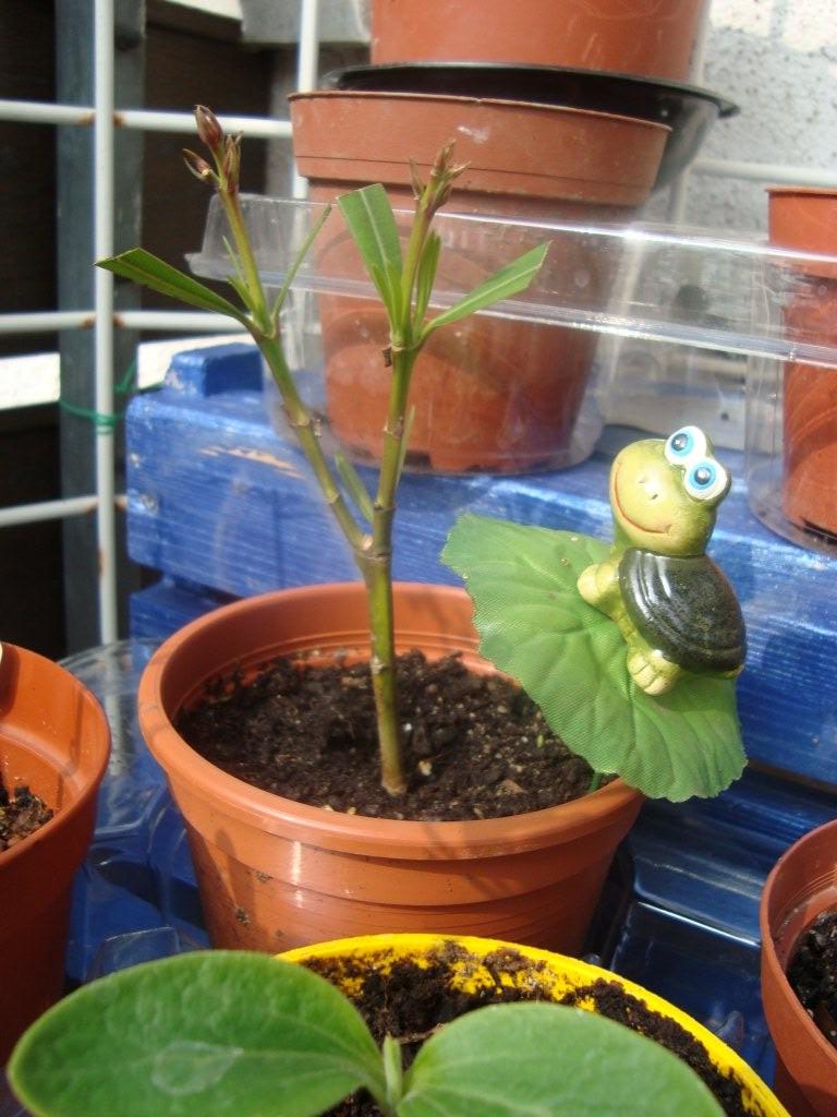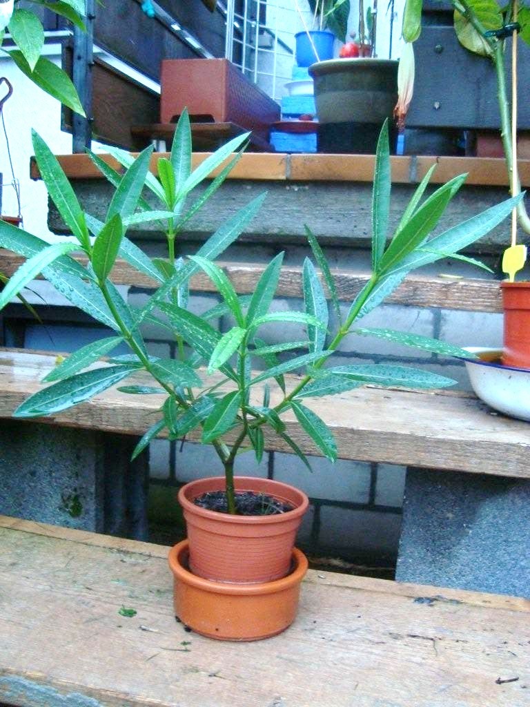 Ich habe mir letztes Jahr einen doch recht mageren Oleander gekauft. Nach dem Überwintern im Keller musste ich leider die Spitzen wegschneiden und entschied dann mir daraus ein Stämmchen zu ziehen. Mir war klar das ich diesen Sommer keine Blüten zu sehen bekommen sollte. Dachte ich zumindest.