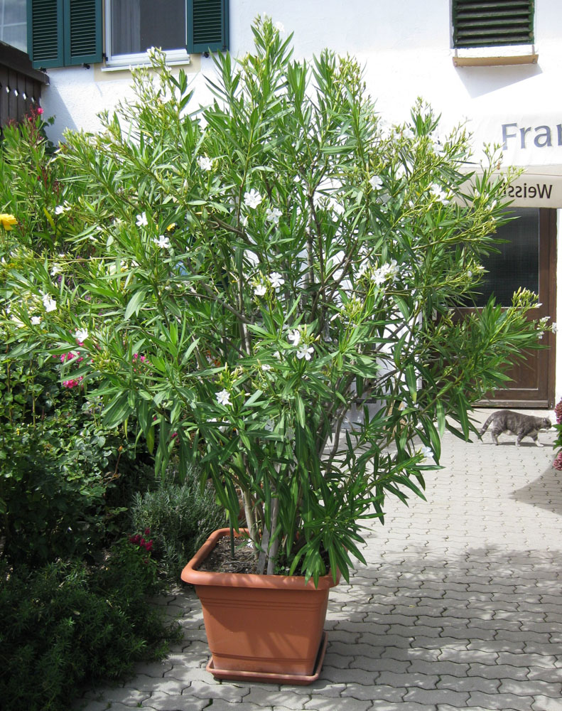 Beim Oleander passiert das kaum. Da kann man ruhig 2-3 Größen größer nehmen.