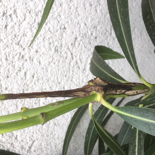 Was ist das? Kann ich die retten? Gehört das ausgeschnitten? Kann ich von den Oleandern Stecklinge nehmen (wo sie nicht aufgeplatzt sind) oder schleppe ich es weiter ?