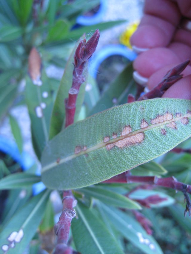 habe eben auf den Blättern meines Oleanders weiße Flecken entdeckt, aber nicht die Ursache dafür entdeckt. Bitte helft mir, damit er keinen weiteren Schaden nimmt. Danke im voraus.
