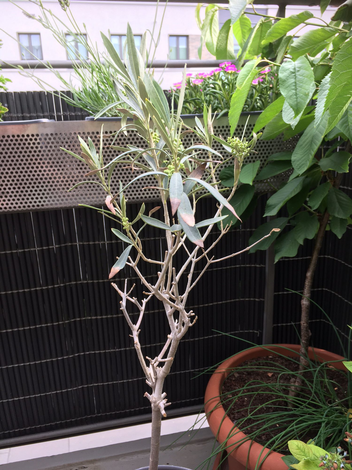 Olivenbaum verliert Blätter, aber entwickelt Knospen