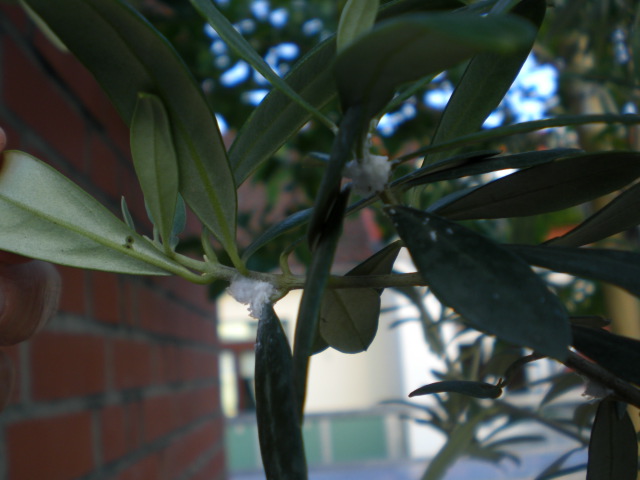 mein Olivenbaum ist mit weißen Flusen übersäht die ohne Probleme abgewischt werden können.
