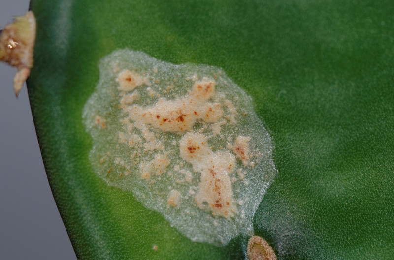 meine Opuntie hat auf einem Ohr diesen komischen Fleck, da er größer wurde wollte ich mal nachfragen, ob jemand eine Ahnung hat, was das ist und ob man es behandeln sollte und wenn ja wie?