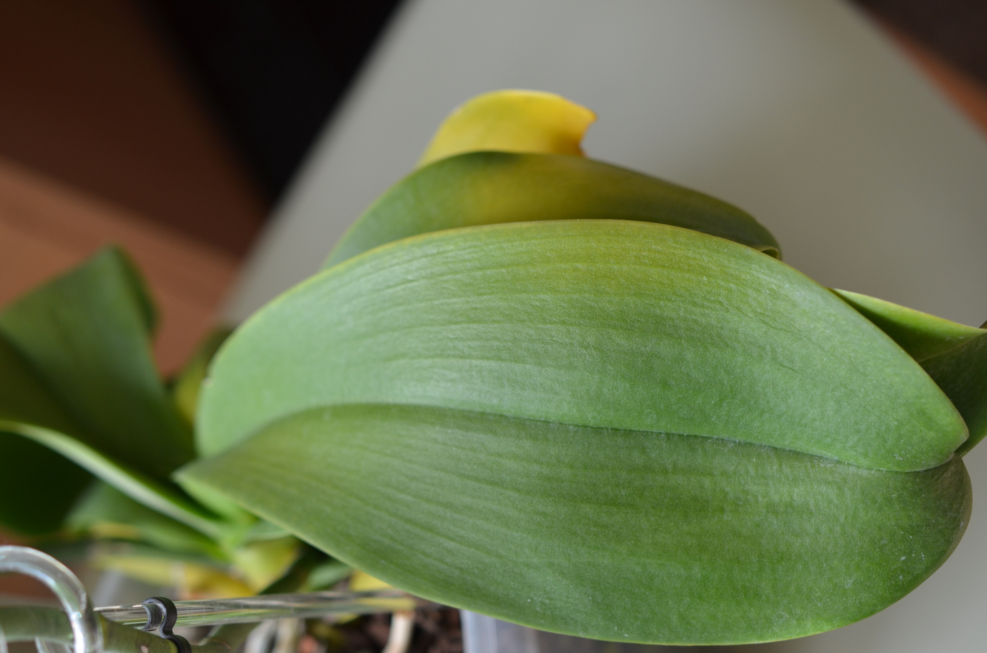 auf den angehängten Fotos seht ihr eine meiner Orchideen, die seit kurzem gelbe Blätter bekommt. Sie teilt sich seit Jahren die Fensterbank mit ein und denselben Pflanzen und wird immer identisch getaucht in abgekochtem Wasser und alle zwei Wochen gedüngt mit Flüssigdünger. Ihren Artgenossen geht es gut und ich habe sie seit über vier Jahren. kann mir absolut nicht erklären, woher die gelben Blätter kommen und dazu noch annähernd alle auf einmal? Wie ihr seht, sind die Wurzeln grün, die ganz oben nicht, aber das ist eigentlich immer so, weil sie in den nächsten Tagen wieder mit gießen dran wäre. Die Blätter fühlen sich auch dünner und irgendwie”sehnig” an.