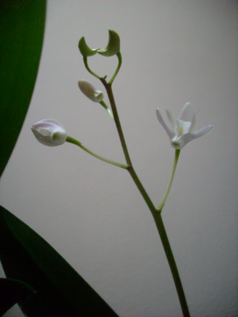 meine orchidee blüht, das erste mal seit jahren...ich wußte zwar das sie weiß blühen soll,aber wie....ich weiß auch, dass es eine dendrobium ist,aber ich weiß nicht welche art es sein könnte? kann mir da vielleicht einer helfen? kennt sich da einer aus oder ist das zu schwer weil es zu viele züchtungen gibt....ich weiß nähmlich nicht,ob es eine hybride oder naturform ist...ich glaube aber eher naturform, weil die duftet ganz stark, trotz das die blüten recht klein sind!
