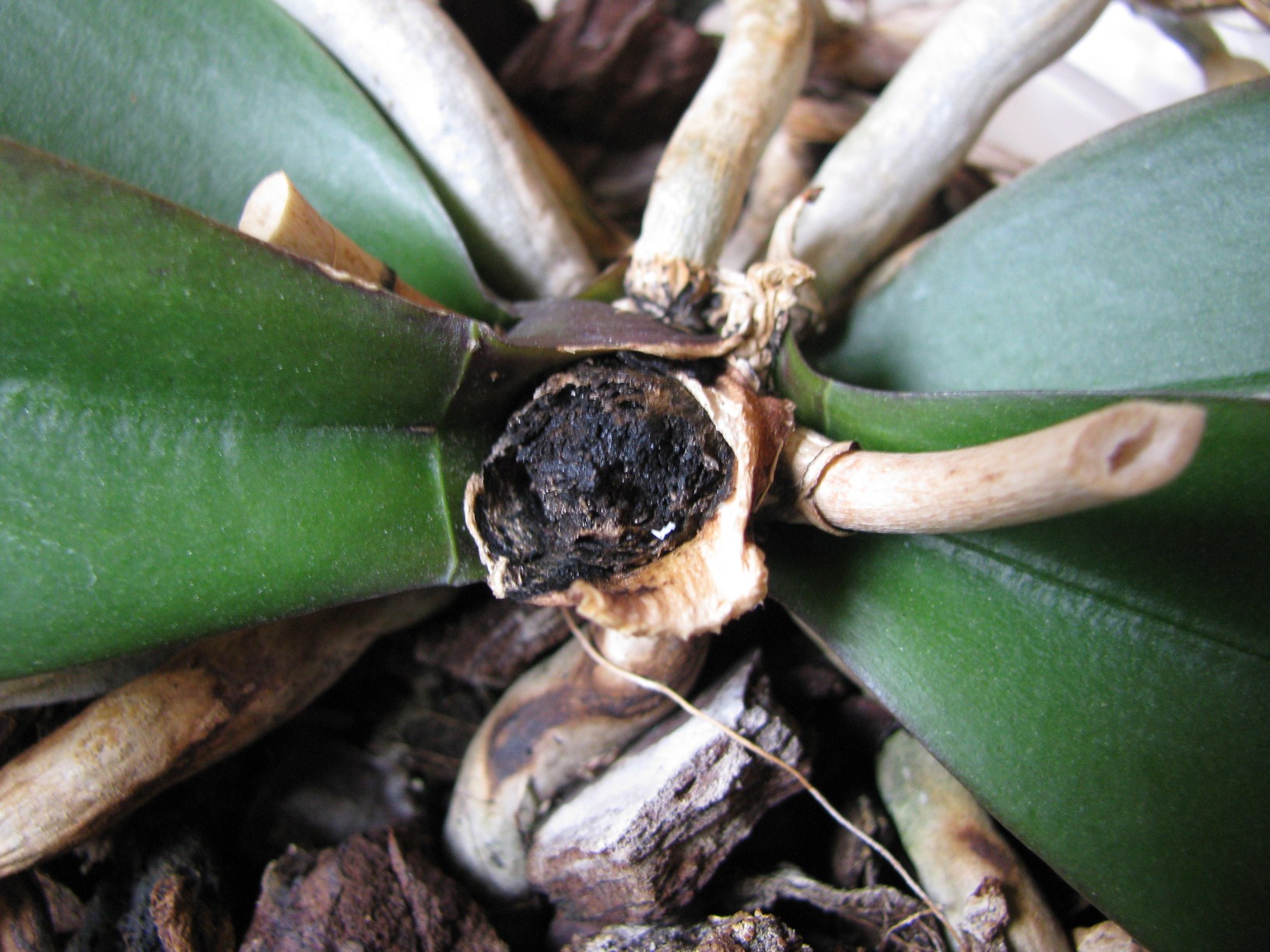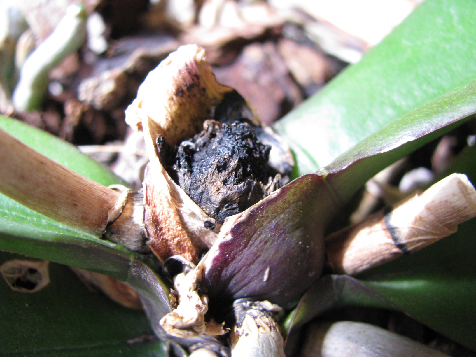 Orchideen haben genetischbedingt die Eigenschaft sich vor dem Absterben fortzupflanzen. Das äußert sich in Form einer Blütenrispe, die sogenannte Notblüte oder durch Ausbildung von Kindel (Ableger). Kindel entstehen am Wurzelhals, da wo die Blätter sind oder an einer Blütenrispe.