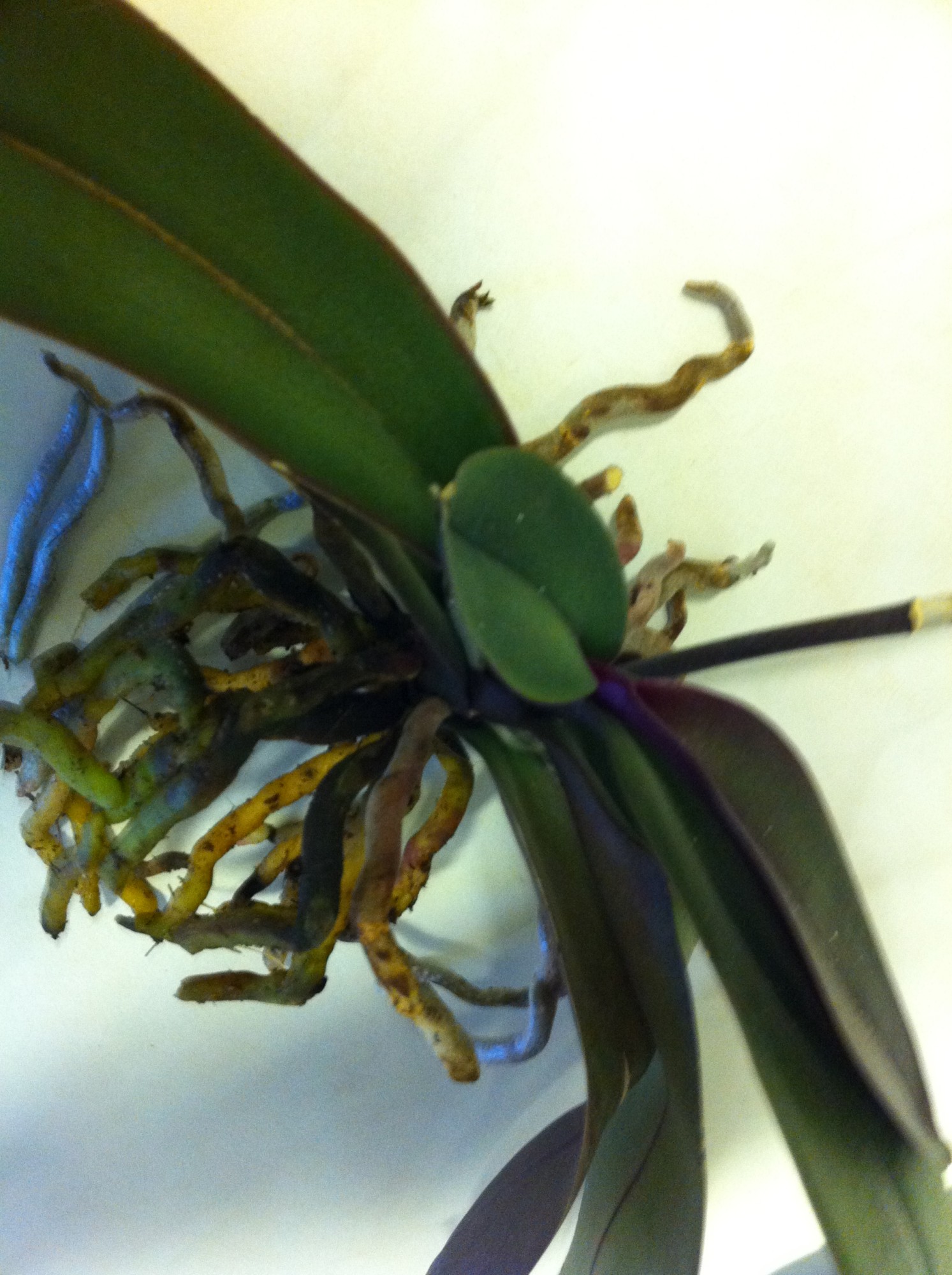 die Wurzeln sind schön grün, sie sehen gesund aus und die Blätter auch.