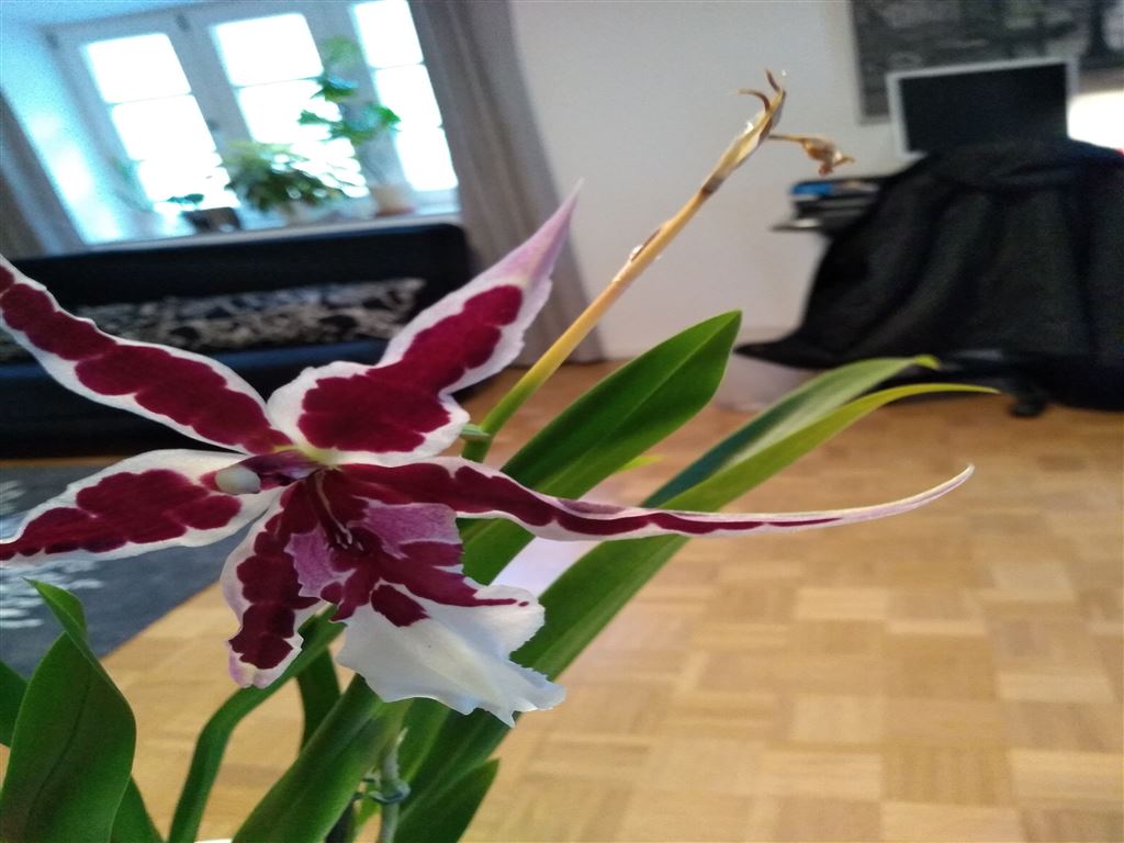 ich hab diese Orchidee letztes Jahr gekauft, da war sie in voller Blüte. Seit dem entwickelt sie eigentlich ununterbrochen neue Blütenstiele. Aber es wird immer nur eine Blüte, die anderen Knospen vertrocknen/verkümmern immer.