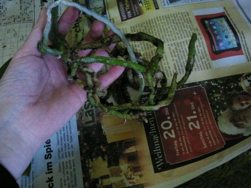 Hab die Orchidee schon von der Erde befreit und die faulen Wurzeln abgeschnitten.