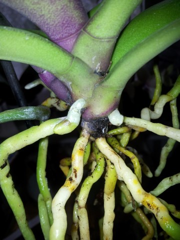 Der Allgemeinzustand der Pflanze ist ganz gut. Sie hat genug grüne und saftige wurzeln, die Blätter sind fest und die Knospen sind gerade am öffnen.