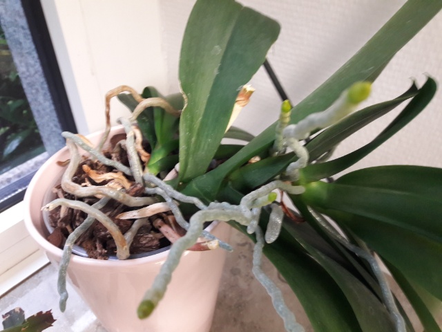 3) die andere hat schöne Luftwurzeln, aber seit 1 Jahr keine neue Blüte