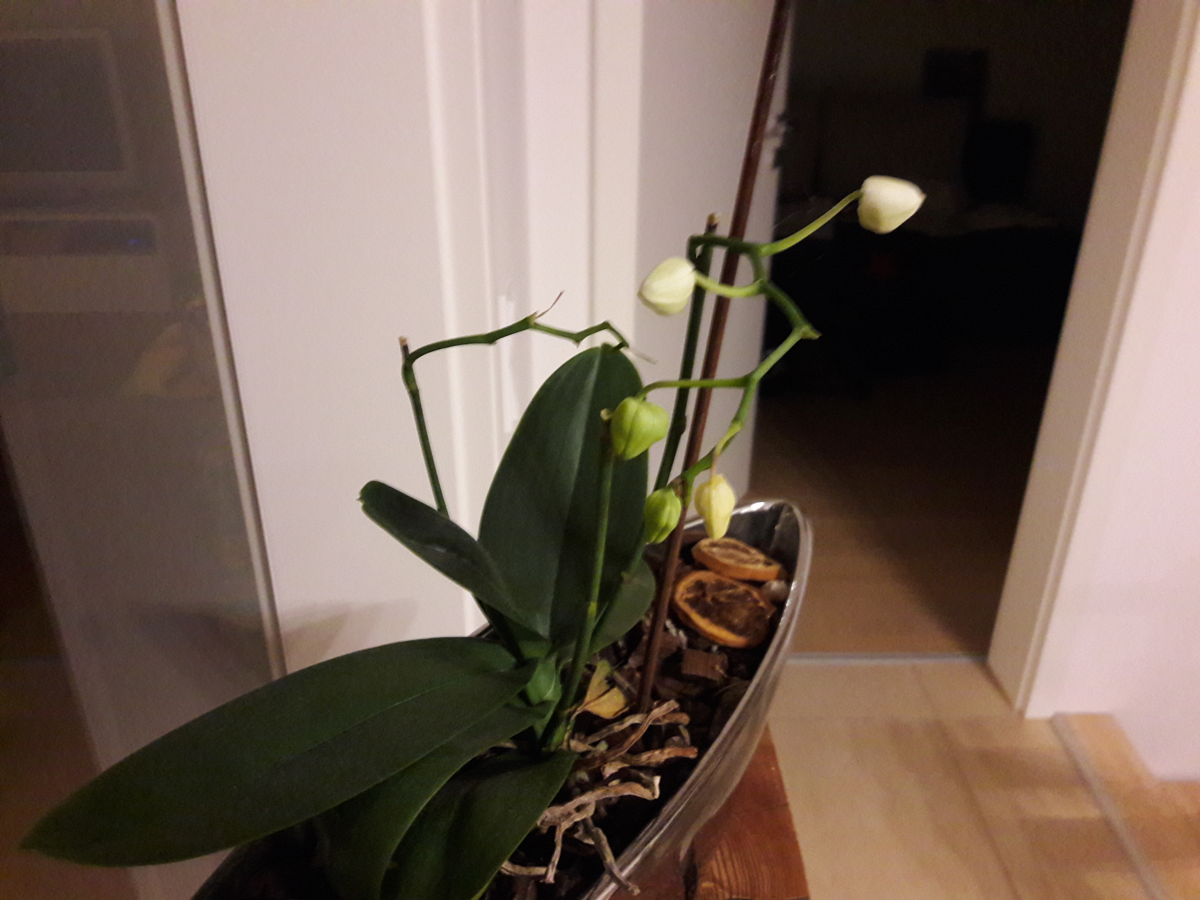 1) 3 Wochen alte, wddnerschöne Orchidee, aber alle neuen Knospen, zunächst sehr schön, fallen dann aber ab und öffnen sich nicht