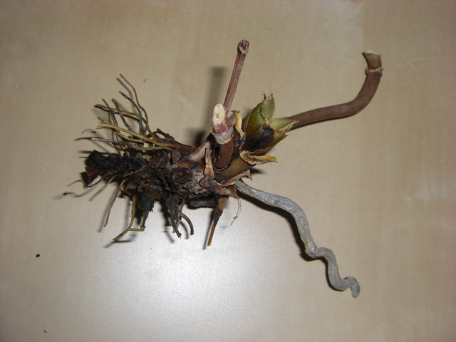 vor gut 2 wochen habe ich sie dann umgetopft in neue orchideen-Erde, da hatte sie noch schöne 5 grüne Blätter - aber sie war mir zu nass.