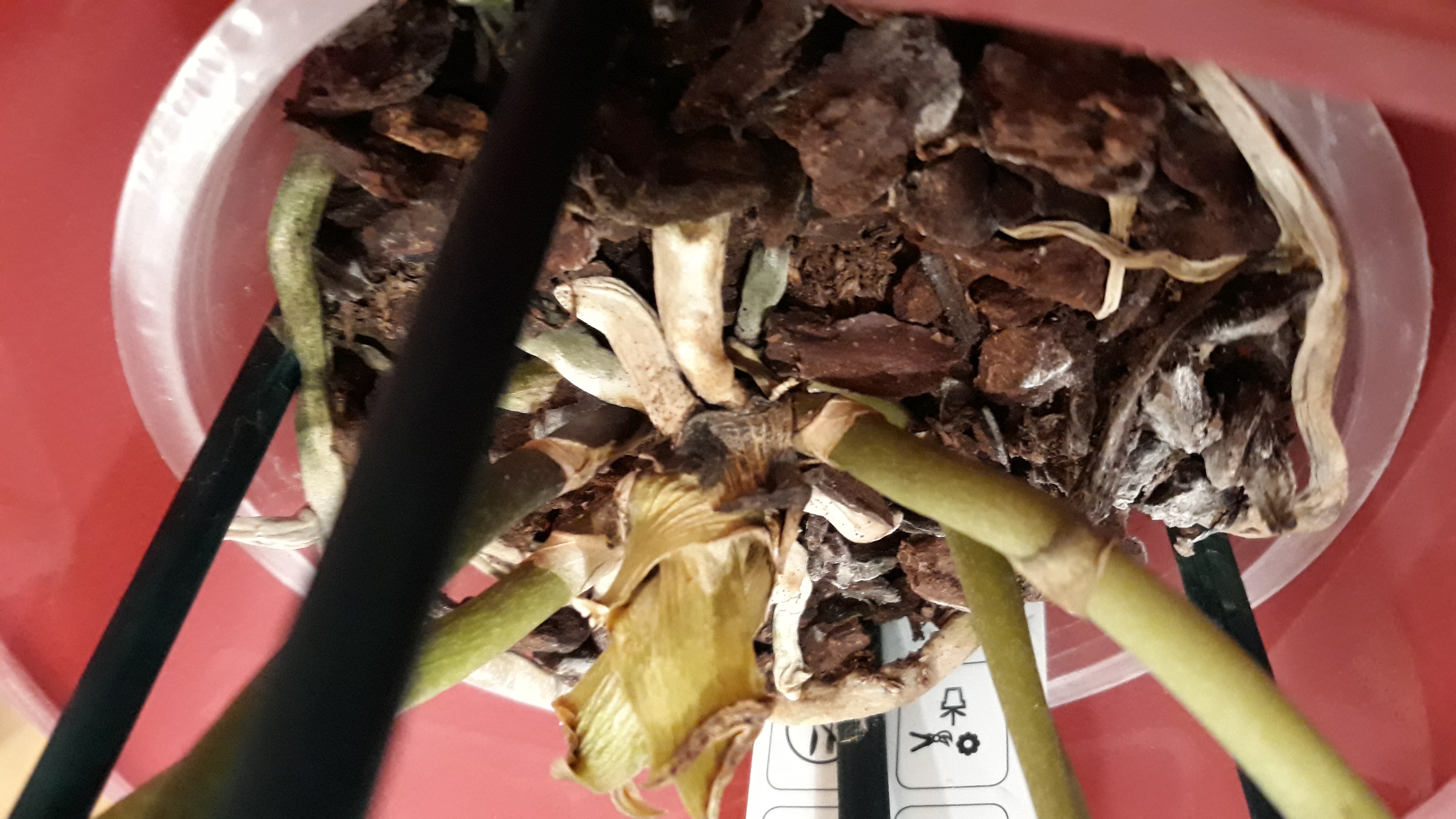 Nach einer wunderschönen Blütenphase hat meine Orchidee von jetzt auf gleich ihre ganzen Blätter abgeworfen und sieht nun so aus. (Siehe Fotos)