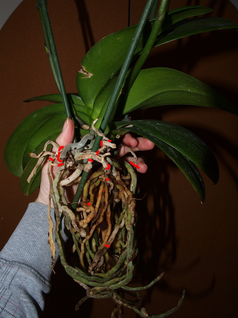 Wie gesagt, ich hab sie erst am Freitag von meinem Freund zum Valentinstag bekommen und würde sie sehr gerne retten! Ich habe daran gedacht die beiden endenden Wurzel einfach abzuschneiden (mit einer Schere?) und die Pflanze für einige Zeit (vl bis morgen?) außerhalb des Gefäßes zu lassen. Wird das genügen? Bitte helft mir sie zu retten!