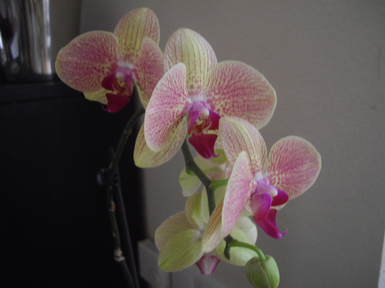So, heut melde ich mich auch mal wieder zu Wort. Zum einen: meine Mini-Phal die seit knapp 5 jahren nicht mehr geblüht hat, schiebt seit der Kamillentee-Behandlung wieder einen Blütentrieb