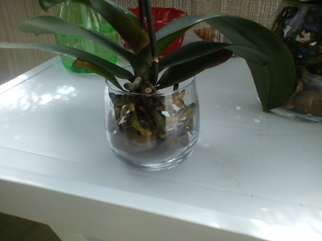 Die kleine, blühende Orchidee habe ich direkt mitgemacht, die hatte sooooo wenige und kleine Wurzeln, dass sie mir beim Tauchen immer aus dem Topf geschwommen ist außerdem konnte ich die Wurzeln durch den Topf nicht sehen und so schlecht einschätzen, wann die kleine wieder Wasser braucht. Die kleine soll jetzt erstmal ein paar neue Wurzeln ausbilden, wenn sie dann soweit ist, kommt sie direkt in den Topf zurück, es sei denn die Glaskultur wirkt Wunder!