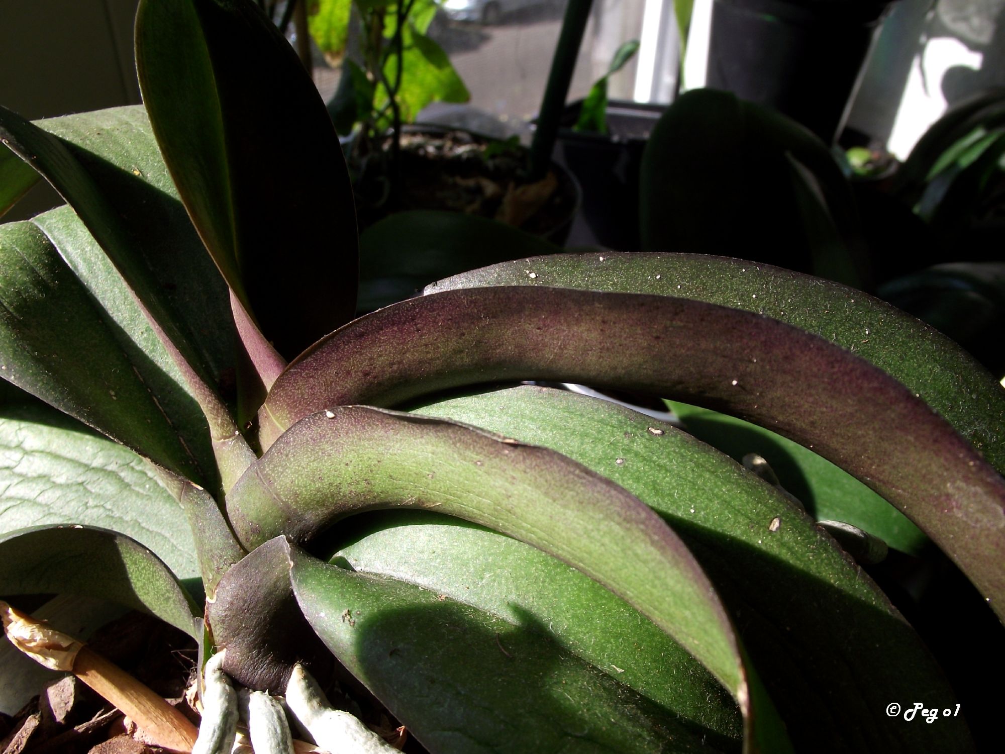 Direkt am Fenster steht sie nicht, ansonsten fassen sich die Blätter noch recht normal an, sind aber auch recht klein, vielleicht 15 cm.