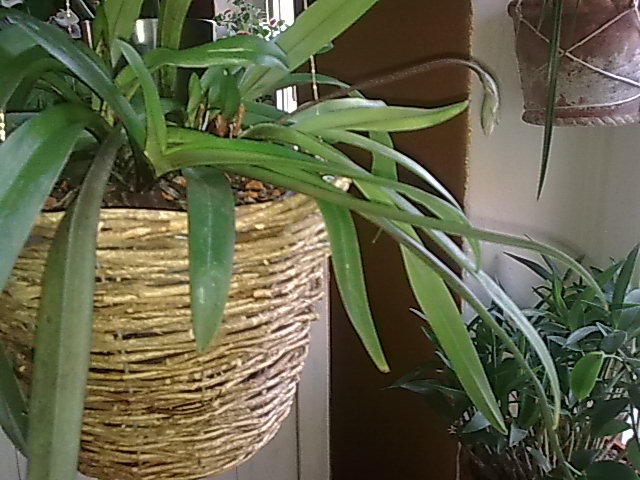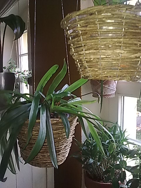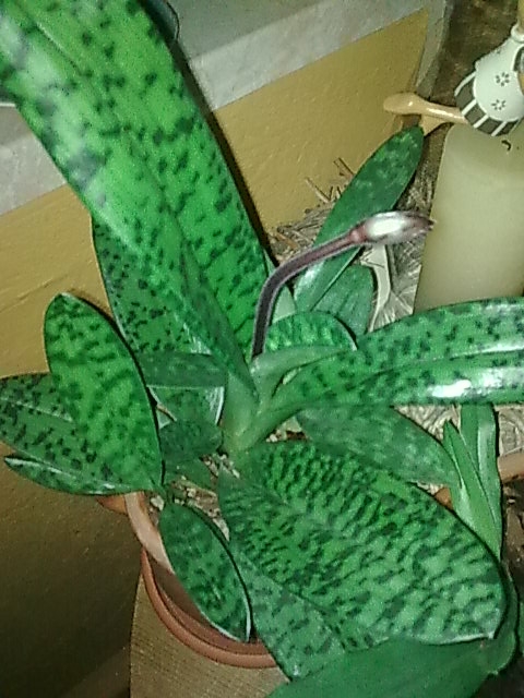 ..bei mir möchte eine buntlaubige 'Frauenschuh-Orchidee' blühen und meine Frauenschuh-Orchidee in der Hängeampel schiebt jetzt insgesamt 5 Blütentriebe