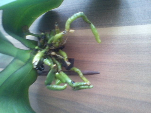 Ich muss euch nochmal um Rat fragen wegen einer meiner Phals. Die Gute hängt total in den Seilen und ich weiß einfach nicht was mit ihr los ist, bzw wie ich die Pflege noch verbessern könnte. Die macht mir echt Sorgen, dieses mickrige Ding Guckt euch mal diese schlaffen Blätter an, und die Wurzeln erscheinen mir auch ziemlich wenig sie treibt zwar ein, zwei neue Wurzeln aus, aber das im absoluten Schneckentempo. Ich habe direkt daneben noch die andere Phal im Glas, da finde ich quasi jeden Tag neue Wurzeln.