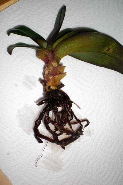 Und eine kleine Orchidee scheint mir einzugehen Erst dachte ich, die Blätter haben einen Sonnenbrand. Die andern Blumen an dem Fenster hatten allerdings nix, es kommt auch nur Morgensonne hin. Aber naja, vielleicht sind sie halt empfindlicher... Aber heute beim Tauchen fiel sie schon fast aus dem Substrat und da bin ich dann doch erschrocken : die Wurzeln sind quasi hin.