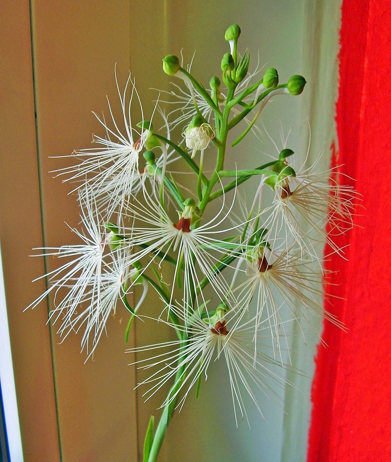 Zu meinen kürzlich gezeigten neuen Blütentrieben ist noch einer dazu gekommen. Direkt neben einer Blüte, die grad am Welken ist.