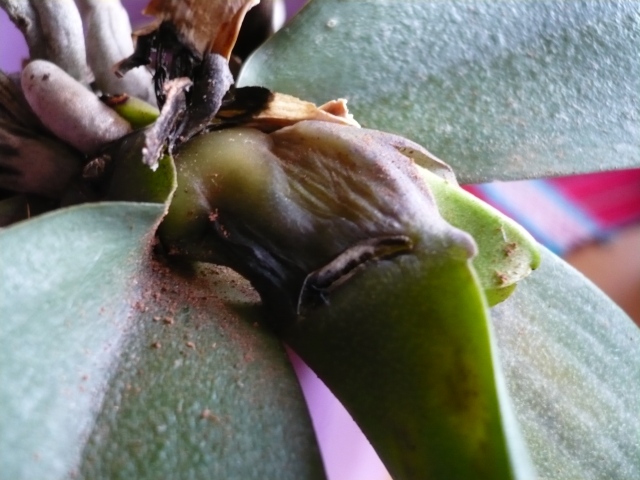 Ich brauch mal dringen eure Hilfe!! Bei mir ist heut Tauchtag und da hab ich an meiner Kuhflecken-Phal was entdeckt, was mir große Sorge bereitet. Ich muß dazu sagen, dass ich bei der vor ein paar Monaten schon einmal zwei Blätter abgeschnitten habe, weil die etwas kränklich aussahen. Danach war lange Ruhe. Aber nun sieht das größte Blatt total schlecht aus, von unten ist so ein komischer Fleck drauf und am Ansatz, am Herz, ist es ganz weich und wabbelig und sieht ganz faulig aus. Ist das etwa Herzfäule? Was kann ich jetzt tun? Ist die Orchi überhaupt nich zu retten? Die anderen Blätter und auch die Wurzeln sehen gut aus.