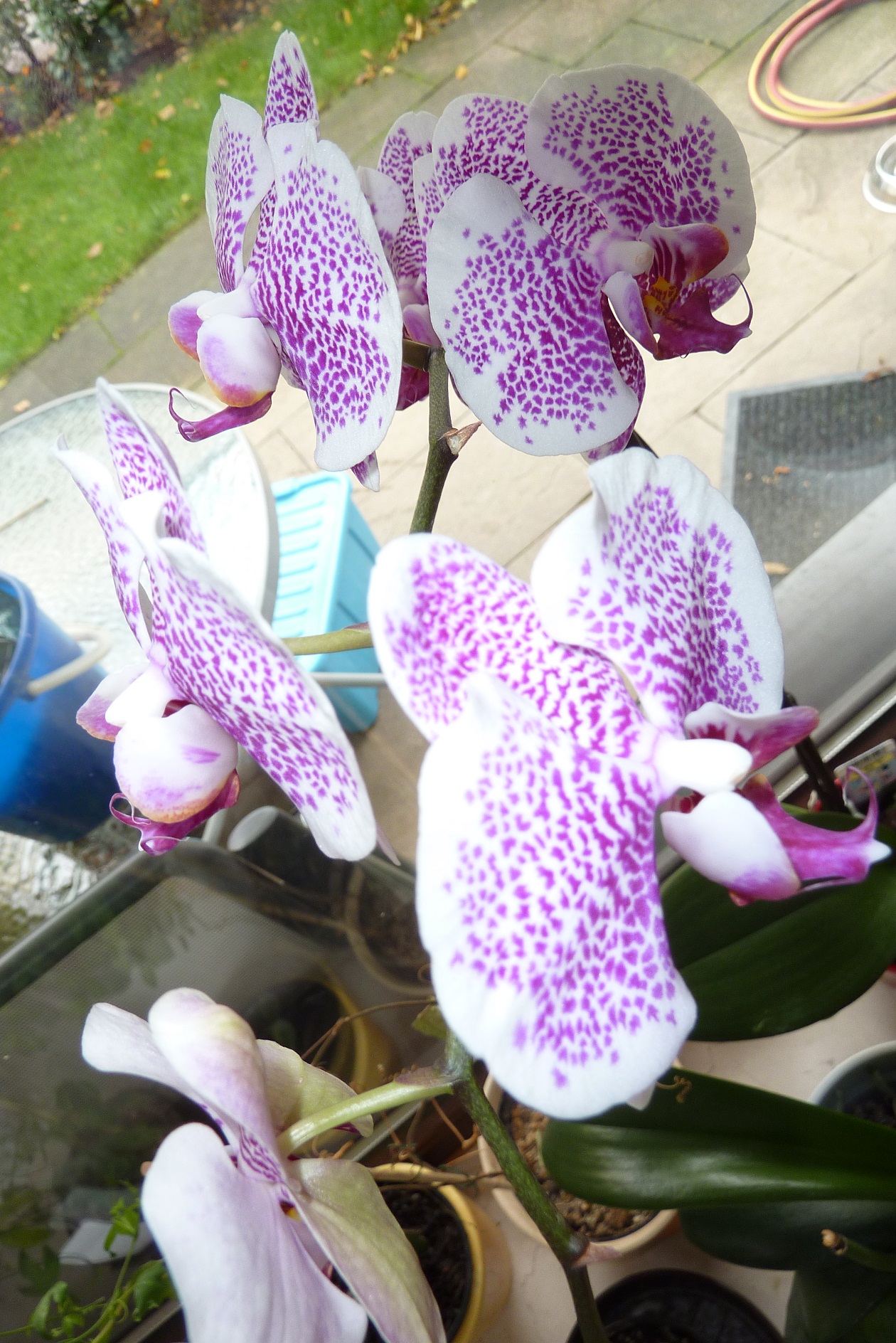 Ich war neulich mal wieder zu Besuch bei einer Dame, die ganz stolz darauf ist, dass ihre Phals alle das gaaanze Jahr blühen und mich auslacht, wenn ich sage, ich würde sie duschen und abtropfen lassen, damit das wasser in den Töpfen nicht steht. Wer es ist, werde ich hier nicht nennen - das wäre gemein und es ist natürlich auch niemand aus dem Forum. Ich will hier lediglich eine ihrer Orchis zeigen, die mich echt fasziniert.