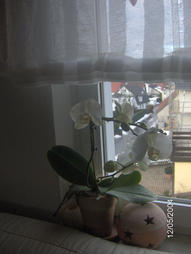 Bis jetzt habe ich hier nur still mitgelesen, aber heute wollte ich euch meine beiden weissen Phalenopsen im Wohnzimmer zeigen, die eine die gerade offen Blüht bekam ich als Blaugefärbte mal zum Geb.Tag geschenkt( weis gefällt se mir aber besser....)