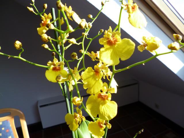 Ich habe jetzt ein kleines Orchideen Tischchen eingerichtet unter dem großen Velux Fenster das jetzt wieder einen Sonnen/Hitze Fand von draussen vor hat und die kleinen Orchis gehen ab wie verrückt--schein ihnen zu gefallen