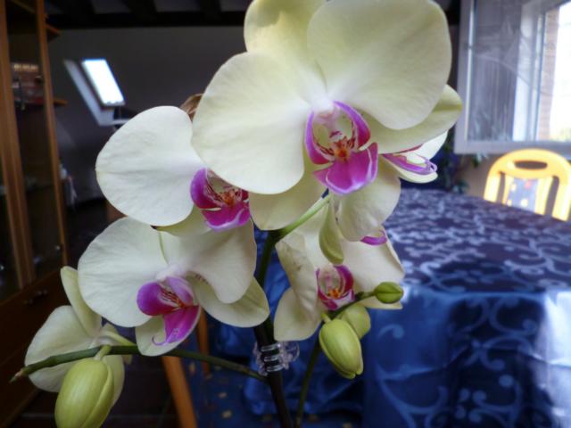 Ich habe jetzt ein kleines Orchideen Tischchen eingerichtet unter dem großen Velux Fenster das jetzt wieder einen Sonnen/Hitze Fand von draussen vor hat und die kleinen Orchis gehen ab wie verrückt--schein ihnen zu gefallen