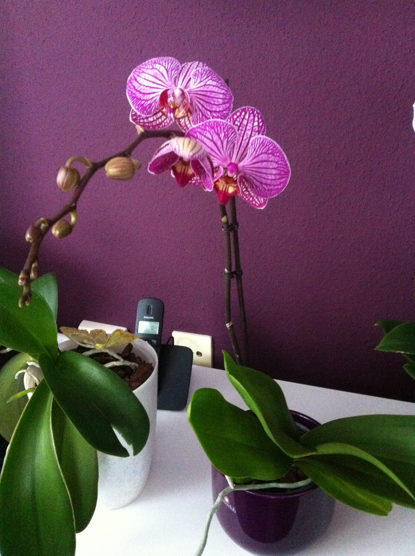 Ich hab so eine Phal, die ich eigentlich für blühfreudig hielt. Die hat riesige fette Blätter, wächst schon wieder unten aus dem Topf heraus, obwohl ich sie erst im Juni umgetopft hatte. Aber blühen will die einfach nicht.